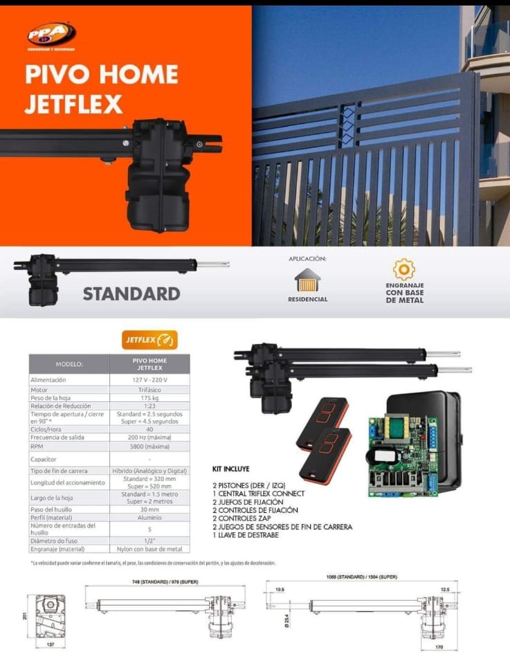 Automatizador para portones pivotantes residenciales de hasta 125 kg (por hoja), pudiendo hacer hasta 40 ciclos (apertura y cierre) por hora con extrema rapidez y precisión. Tiene un carril centralizado (acoplado en el centro del motorreductor), pudiendo ser instalado en cualquier lado de la hoja de la puerta